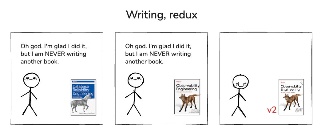 90% new material, a clearer mission, and a rogues gallery of contributors. The second edition of Observability Engineering is almost done.